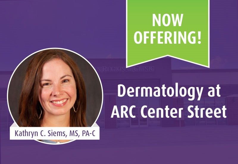 Kathryn Siems is currently welcoming new and established patients to her Dermatology practice at ARC Center Street for appointments beginning January 4. Appointments can be made online or by calling the clinic, 737-404-0347.
