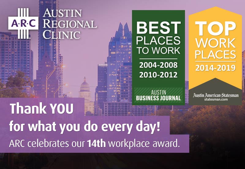 This year Austin Regional Clinic is celebrating our 14th workplace award. We are listed in the Top Workplaces of 2019, published in the Austin American-Statesman this past Sunday.