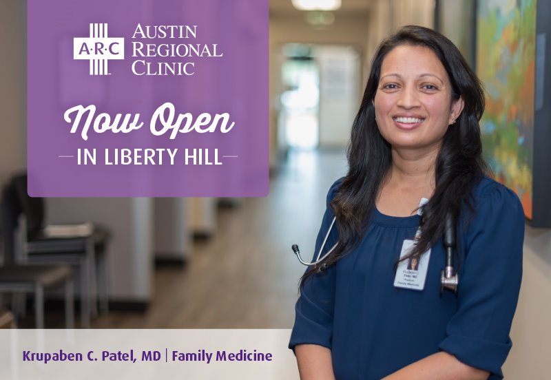 ARC Liberty Hill, a 6,400-square-foot clinic, is staffed by Family Medicine physician Krupaben C. Patel, MD, providing care to both adults and children of all ages. Pediatrics will be added in early Fall 2021.