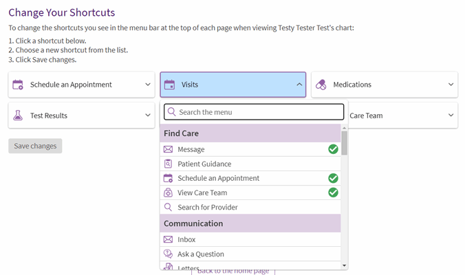 Customize your MyChart shortcuts