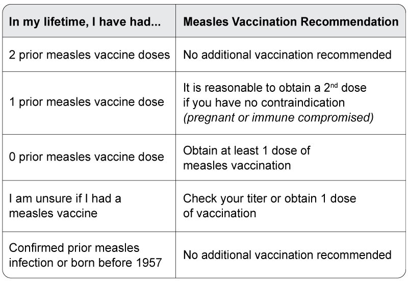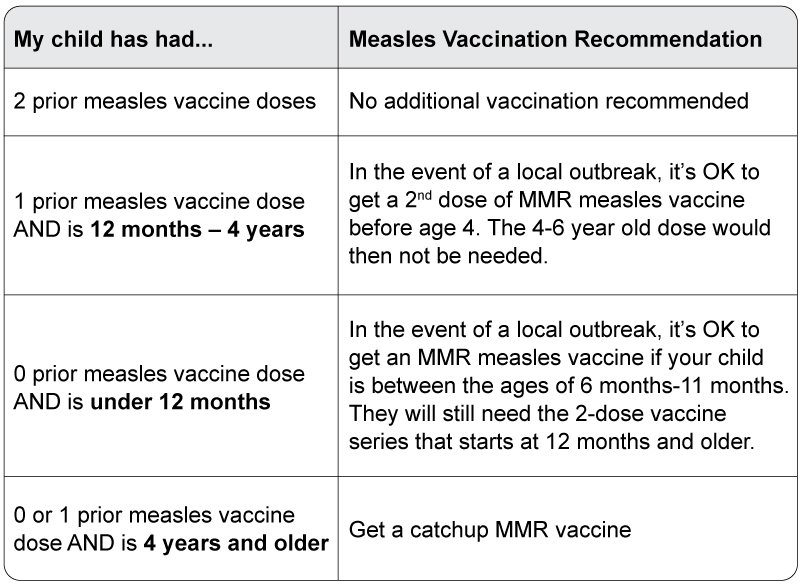 The information below provides guidance and answers to common questions about measles vaccinations for various ages and scenarios.