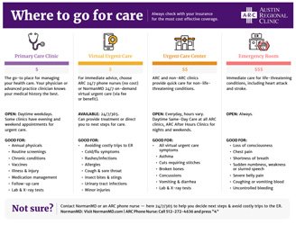 Bookmark our ARC Where to Go for Care chart for quick and informed healthcare decisions!