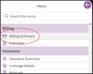 - Go to Your Menu > Billing Summary.